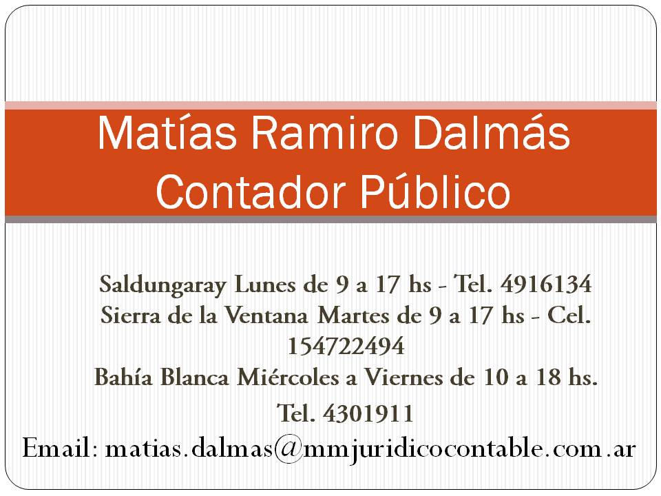 - Hernán G Salomón – Contador – Tel.: 0291 154405533 – Sierra de la Ventana