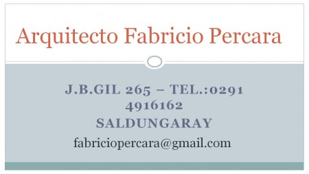 - Fabrizio Percara - Arquitecto . J. B. Gil 265. Tel.: 291 4916162. Saldungaray.